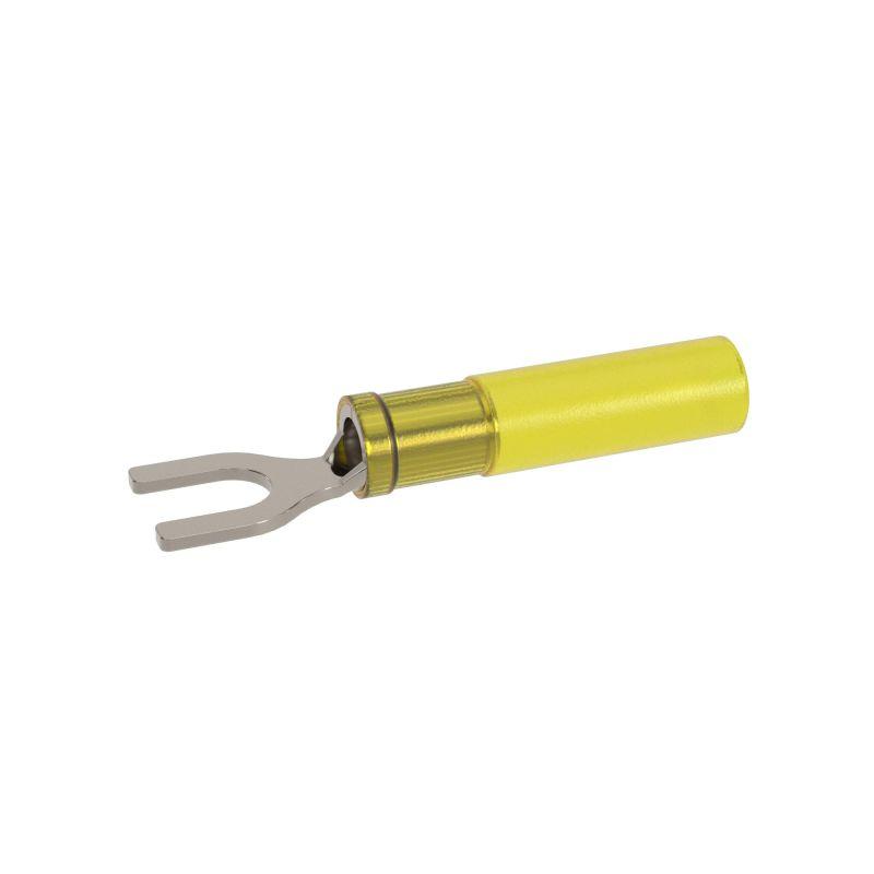 Предназначен для оконцевания медных/алюминиевых многопроволочных жил кабелей/проводов в электрических цепях переменного/постоянного тока напряжением до 600 В. Контактная часть выполнена из высококачественной меди марки М1. Лужение исключает образование гальванической пары. Внутренняя часть гильзы имеет радиальные насечки, повышающие плотность контакта. Изоляция из ПВХ выдерживает температуру до 85 ?C. Класс горючести - V0, стандарт UL 94. Термоусадочная манжета обеспечивает герметичность соединения. Не обладает клеевым слоем. Цвет - желтый. Сечение: 4-6 мм2. Диаметр отверстия клеммы 4,3 мм. Метиз - М4. Форма контактной части - вилка.
