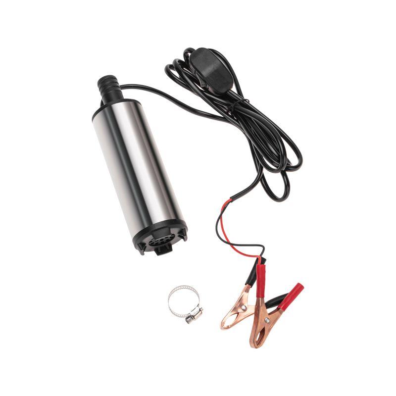Погружной насос предназначен для перекачки дизельного топлива, керосина, антифриза из бочки, цистерны или любой другой емкости с достаточно узким горлышком. Эксплуатация допускается в широком температурном диапазоне окружающей среды от -10 до 40 градусов. Устройство комплектуется выключателем, расположенным на проводе, зажимами типа «крокодил» и проводом длиной 3 м. Насос оснащен четырьмя опорами, благодаря которым устойчиво стоит на дне емкости в вертикальном положении. Для начала работы достаточно подключить топливный шланг и аккумулятор. ВНИМАНИЕ! Запрещено перекачивать бензин, растворители, горючие спирты.