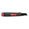 Ножи строительно-монтажные со сменными выдвижными сегментированными и трапециевидными лезвиями EKF серии MASTER и EXPERT служат для резки различных строительных материалов (линолеум, ковровые покрытия, обои, гипсолитовые плиты, гипсокартон, кровельные материалы, пластик, дерево, макетных работ). Могут применяться как в бытовых условиях, так и профессионалами. Прочный металлический корпус со вставками из резины и пластика позволяет прикладывать значительные усилия при резе. Обрезиненный корпус обеспечивает крепкий и надежный хват без опасения соскальзывания руки в зону реза. Фиксаторы различной конструкции надежно удерживают лезвие при работе с большими усилиями. Ассортимент сменных лезвий, выполненных из высокопрочной инструментальной стали долго держат заточку и сохраняют высочайшую режущую способность инструмента. Увеличенное с 7 до 14 число ломающихся сегментов лезвий удваивает ресурс инструмента.