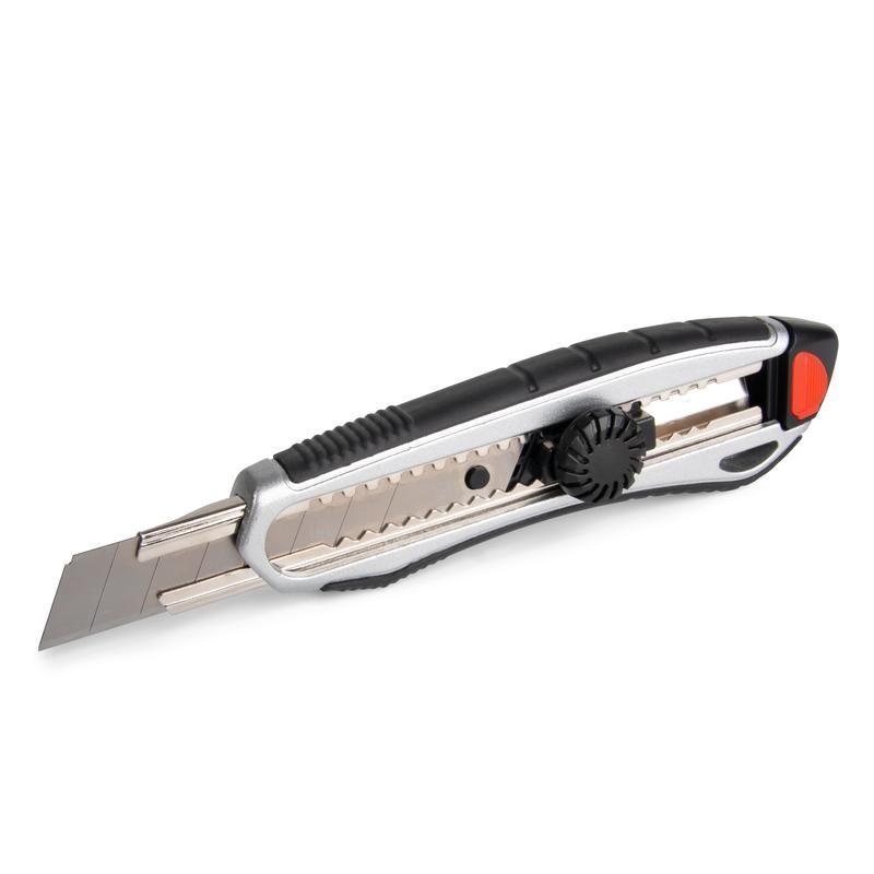• Предназначен для резки тонких строительных материалов (бумага, картон, пластик, резина и т.д.) • Выдвижное секционное лезвие • Ширина лезвия: 18мм • Материал лезвий: инструментальная сталь • Трещоточный фиксатор лезвия • Никелированные направляющие из нержавеющей стали • Эргономичный пластиковый корпус с нескользящими вставками • Корпус оснащен отверстием для подвешивания • Вес: 128г • Длина: 180мм