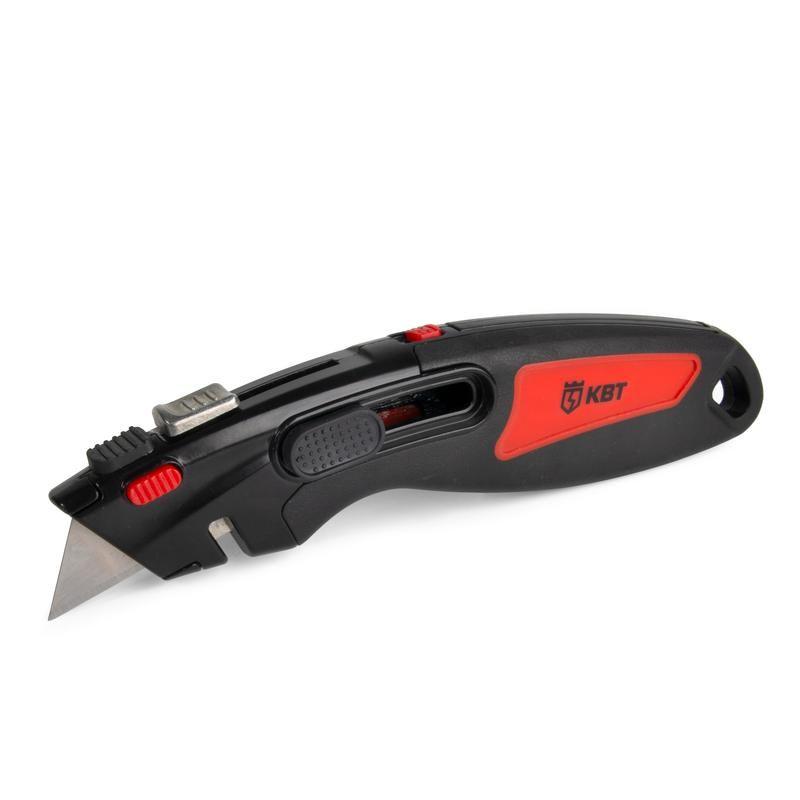 • Предназначен для резки тонких строительных материалов (бумага, картон, пластик, резина и т.д.) • Выдвижное двустороннее трапециевидное лезвие с функциями фиксации и автовозврата • В конструкции ножа предусмотрен стропорез • Ширина лезвия: 18мм • Материал лезвий: инструментальная сталь • Механизм быстрой смены лезвий • В рукоятке ножа находится отсек для хранения лезвий • 4 лезвия в комплекте (1+3 в отсеке хранения) • Эргономичный корпус из легкого сплава с нескользящими вставками • Прорезиненный упор для большого пальца • Корпус оснащен отверстием для подвешивания • Вес: 210г • Длина: 180мм