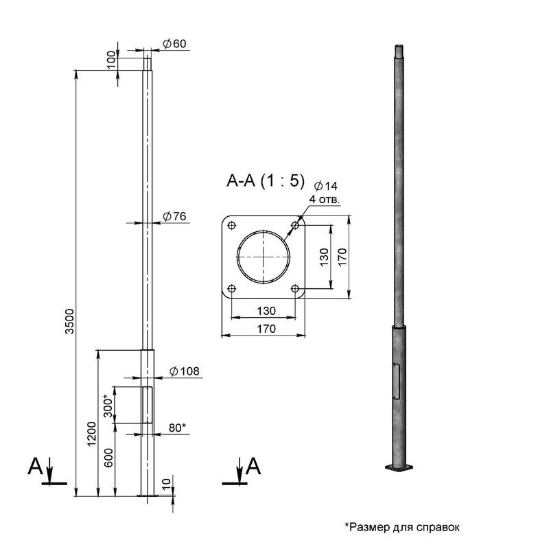 Опора ОП1ф-3.5-108/76/т60-(К170-130-4х14)-по 9005 муар Пересвет В00007135