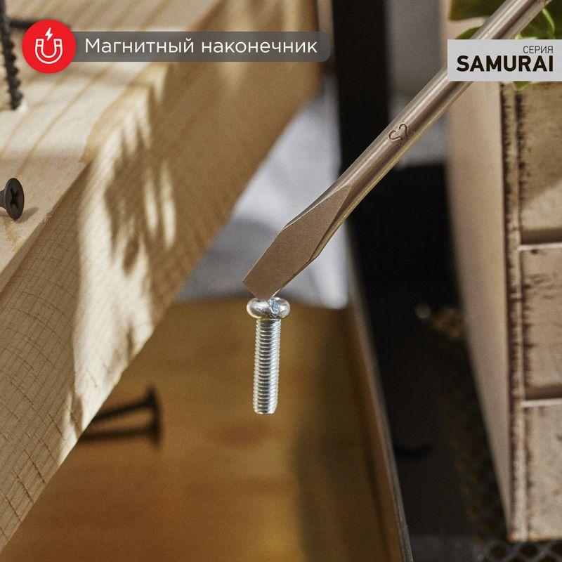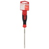 Отвертка шлицевая используется для монтажа и демонтажа резьбовых соединений (шурупов, саморезов), имеющих на головке прямой паз. Оснащена эргономичной трехкомпонентной рукояткой, которая предотвращает скольжение в ладони и обеспечивает более комфортную работу. Инструмент обладает стержнем, который изготовлен из высококачественной японской стали, характеризующейся повышенной прочностью и высокой стойкостью к коррозии. Также на стержне расположены насечки, благодаря которым можно использовать отвертку как надфиль для точных работ. Благодаря намагниченному наконечнику крепежная деталь не упадет при извлечении или установке. В основании инструмента предусмотрено отверстие для его подвеса.