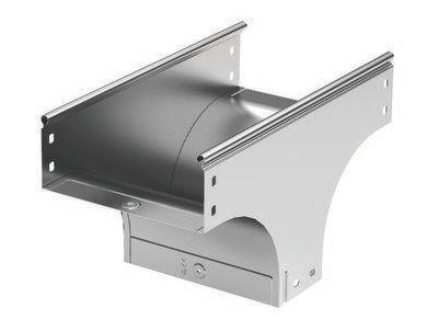Ответвители – это аксессуары, облегчающие построение кабельных трасс сложной геометрии, с поворотами и изгибами. Они позволяют создавать ответвления кабельной трассы. Ответвитель TD имеет Т-образную форму и применяется для организации поворотов и ответвлений в вертикальной плоскости. Его конструктив обеспечивает плавный поворот и предупреждает повреждение кабеля при прокладке. При применении вместе с крышкой обеспечивается высокая степень пыле- и влагозащиты кабеля – до IP 44, и при этом простой доступ к кабелю, т.к. крышку можно снять при необходимости. Исполнение – "сталь, оцинкованная по методу Сендзимира". Высота боковой стенки лотка – 80 мм, ширина в горизонтальном направлении – 200 мм, ширина в вертикальном направлении – 200 мм. Применение комплектных аксессуаров облегчает расчет числа необходимых элементов для монтажа – в комплект уже входят соединительные пластины и детали крепежа.