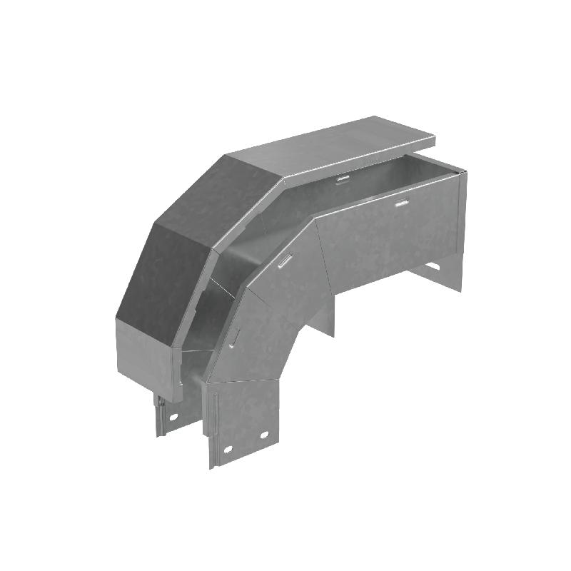 Т-ответвитель-крышка предназначен для создания ответвления кабельной трассы, разворачивая при этом открытую часть лотка вокруг своей оси на 90 градусов. В комплекте есть крышка для секции, которая защищает уложенный кабель от механических повреждений, попадания мусора и пыли. Элемент выполнен из стали и оцинкован по методу Сендзимира. Предназначен для применения в местах предпочтительно с сухим климатом, внутри помещений и в слабоагрессивных средах, в соответствии с ГОСТ 15150-69. Изделие используется для организации плавных поворотов и перехода трассы с исходной ширины лотка 100 мм на ширину 100 мм. Фасонная секция предупреждает повреждение кабеля при прокладке и позволяет рационально использовать внутренний объем.