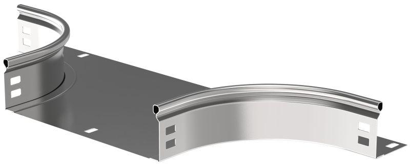 Отвод Т-образный плавный предназначен для организации Т- или Х-образного горизонтального отвода кабельной трассы. Также аксессуар применяется для Т-ответвления вниз в вертикальной плоскости без применения крышки. Крышка аксессуара в комплект не входит. Аксессуар изготовлен из стали горячего цинкования методом Сендзимира (защитный слой цинка не менее 10 мкм).