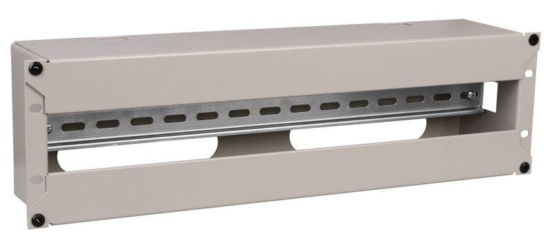 Электрораспределительная панель с DIN-рейкой используется для установки в 19" шкафах и стойках модульного оборудования и подведения к ней электрических кабелей с последующим распределением рабочего напряжения на потребителей. Панель состоит из корпуса, лицевой съемной крышки и DIN-рейки. На обратной стороне предусмотрены окна для ввода кабелей в панель. Электрораспределительная панель устанавливается на вертикальные монтажные профили с помощью крепежа винт-шайба-гайка. На корпусе предусмотрена возможность организации заземления изделия.