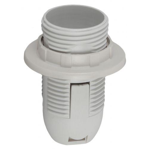 патрон с кольцом изготавливается из термостойкого пластика, материал химически устойчивый к агрессивным средам, обладает высокой прочностью и теплостойкостью; не обладает способностью выдерживать высокие температуры нагрева, поэтому его чаще всего используют для ламп накаливания мощностью не более 60 Вт