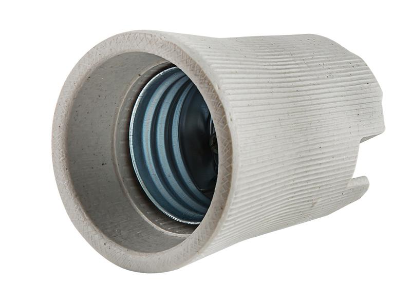 Жаропрочный керамический патрон предназначен для ламп с диаметром цоколя 27 мм (Е27). Теплоустойчивость более 1 000?С. Тип фиксации цоколя лампы – винтовой. Контактная группа из электротехнической латуни обеспечивает надежный контакт с ламповым цоколем, исключающий искрение и образование конденсата.