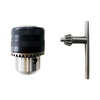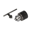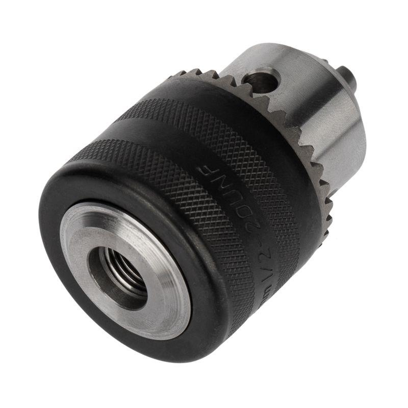 Ключевой патрон с посадочным диаметром 1/2 дюйма подходит для фиксации оснастки диаметром 1,5-13 мм в дрели. Высококачественное исполнение позволяет использовать его для профессиональных целей. Патрон с кулачками твердостью 54-56 HRC выдерживает интенсивное использование, может применяться в ударном режиме. Ключевой механизм обеспечивает большое усилие затяжки оснастки, что является гарантией надежной фиксации. За счет рельефной поверхности с патроном удобно работать, так как он не выскальзывает из рук. К патрону прилагается ключ для смены и фиксации сверл.