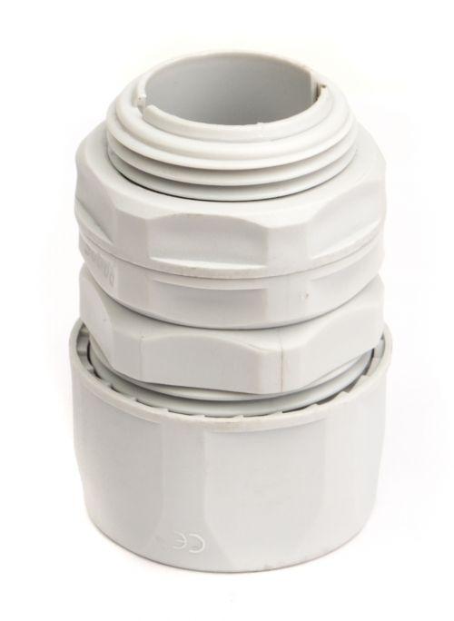 Переходник "Армированная труба - коробка" для герметичного соединения гибких армированных труб с ответвительными коробками, корпусами шкафов и боксов. Диаметр - 10 мм. Материал: полипропилен. Степень пыле- и влагозащиты IP65. Цвет серый RAL 7035. Элемент системы может эксплуатироваться при широком диапазоне температур: от –25°С до +60 °С.