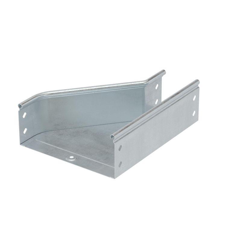 Элементы, входящие в состав системы "S5 Combitech" позволяют предусмотреть любые особенности проектирования и монтажа трассы. При построении кабельных трасс может возникать ситуация, когда требуется увеличить или уменьшить ширину лотка. Для этого применяется переходник (редукция) – аксессуар, имеющий разную ширину в начале и в конце. Правосторонняя редукция – аксессуар, который расширяется с правой стороны. Такой конструктив позволяет размещать переходник вплотную к стене. Ширина его составляет 80 мм в узкой части и 100 мм – в широкой. Максимальная степень пыле- и влагозащиты – IP 44 (при использовании вместе с крышкой). Высота - 80 мм. Исполнение – "сталь, оцинкованная по методу Сендзимира". В состав комплектного аксессуара входят необходимые крепежные элементы и соединительные пластины.