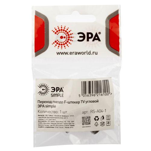 Переходник Simple RS-A04-1 гнездо F-штекер TV угловой 1 шт ЭРА Б0048298