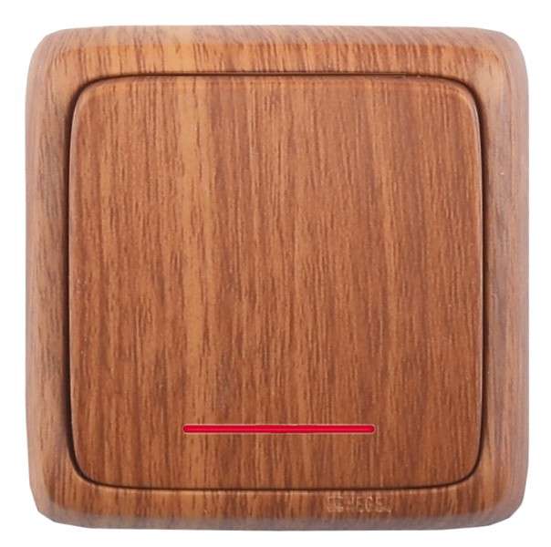 Переключатель 1-кл. ОП Альфа 10А IP20 с индикацией дуб HEGEL ВА10-162-05