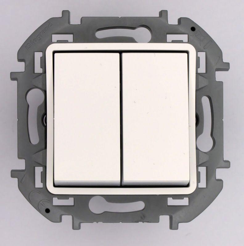 Переключатель модульный двухклавишный Legrand Inspiria для скрытого монтажа, цвет "Белый", номинальный ток 10 А, напряжение ~250В. Предназначен для установки в электрических сетях жилых и общественных зданий и используется для управления приборами освещения, вентиляции и т.д. Используется для независимой коммутации двух нагрузок. Подходит для управления с одного, двух или более мест. Особенности изделия: - Изделие построено на базе надежных и проверенных временем одномодульных переключателей серии Mosaic и переходного адаптера Mosaic-Inspiria. - Механизмы удобно монтировать благодаря безвинтовым клеммам с удобными толкателями, цветовой и буквенной маркировками, а также функциональной рабочей схеме на корпусе - Удобно подключить несколько кабелей к одной клемме поможет фронтальное размещение лампы подсветки - При необходимости дополнительно подключить нейтральный проводник, это легко сделать благодаря выделенной клемме