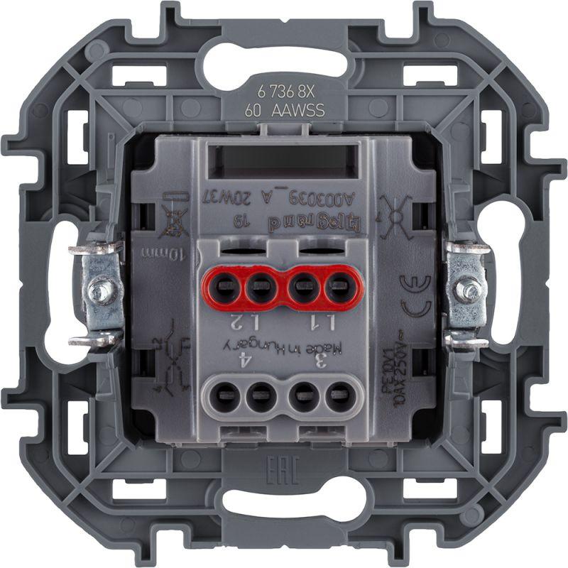 Переключатель промежуточный одноклавишный Legrand Inspiria для скрытого монтажа, цвет "Алюминий", номинальный ток 10 А, напряжение ~250В. Предназначен для установки в электрических сетях жилых и общественных зданий и используется для управления приборами освещения, вентиляции и т.д. Используется для управления нагрузкой с трех или более мест. Особенности изделия: - Компактный механизм с глубиной всего 20 мм. комфортно размещается в различных монтажных коробках. - Материал клавиши - глянцевый пластик АБС, стоек к выгоранию и загрязнениям. - Все токоведущие части выключателя имеют защиту от случайного прикосновения. - Для подсоединения проводов используются винтовые зажимы. - Улучшенная эргономика снижает вероятность искрения при коммутации светодиодов. - Ход клавиши короткий, не громкий.