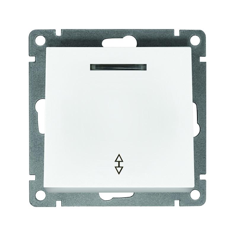 Переключатель проходной 1-кл. СП Афина 10А IP20 с подсветкой механизм бел. Universal A0125