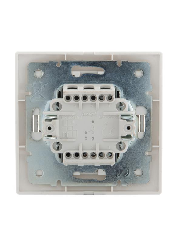 Переключатель проходной 1-кл. СП Mira 10А IP20 с бел.вставкой бел. LEZARD 701-0202-105