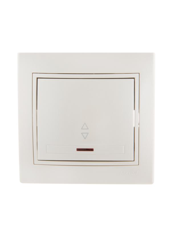 Переключатель проходной 1-кл. СП Mira 10А с подсветкой со вставкой жемчуж./бел. перламутр. LEZARD 701-3030-114