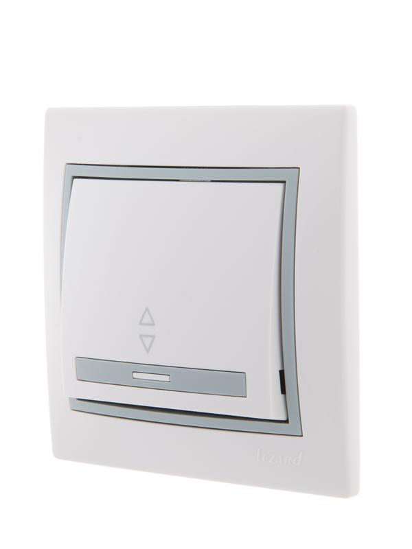 Переключатель проходной 1-кл. СП Mira 10А с сер. вставкой бел. LEZARD 701-0215-105