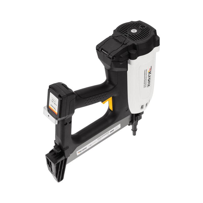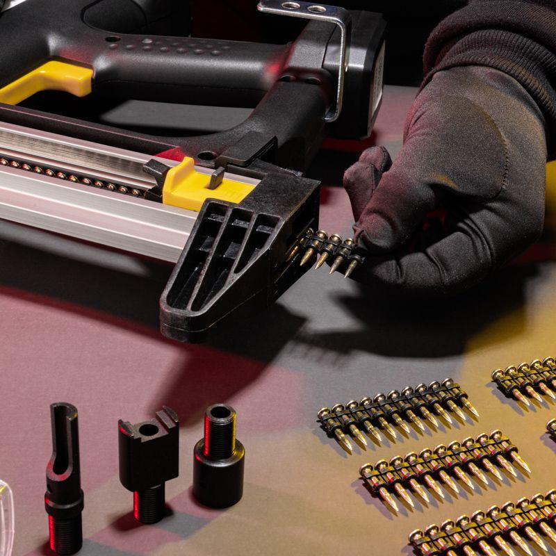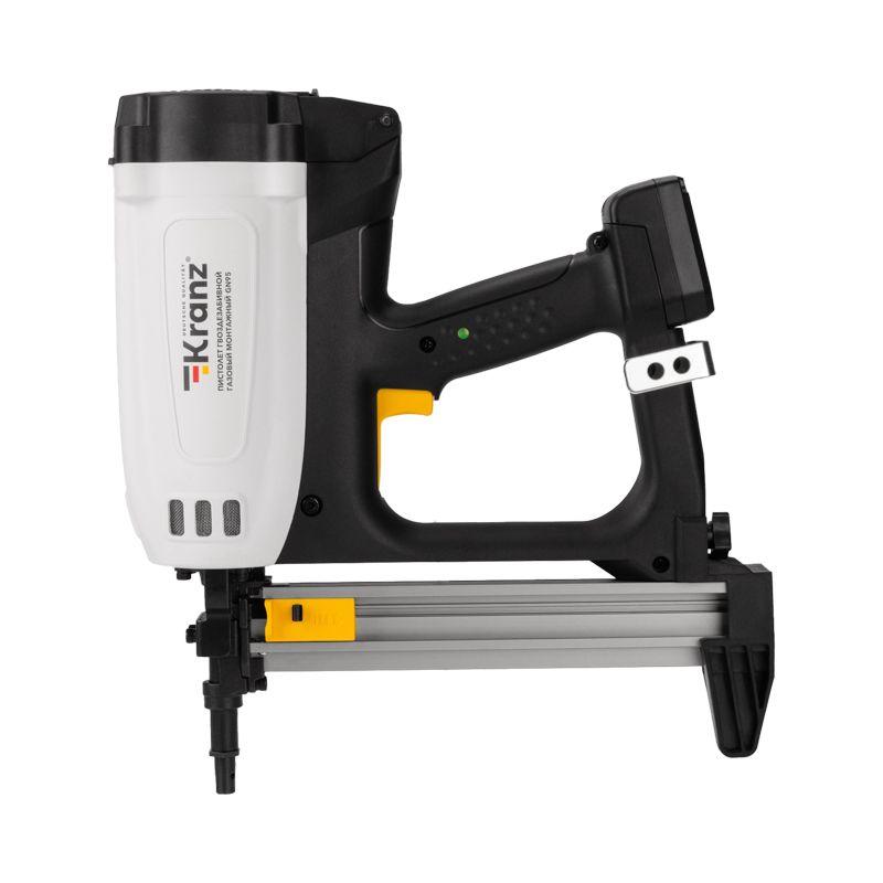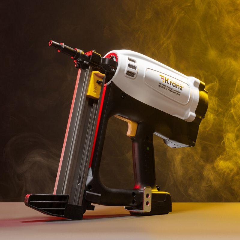 Гвоздезабивной газовый пистолет предназначен для быстрого монтажа крепежных изделий к бетонным поверхностям, кирпичной кладе и изделиям из металлопроката. Инструмент обладает силой удара в 95 Дж, что позволяет забивать гвозди длиной от 15 до 40 мм и диаметром от 2,7 до 3,05 мм. Емкость магазина – 30 гвоздей. Одного газового баллона хватает на 1100 гвоздей. Длина баллона без учета пластикового клапана 165 мм. При производстве применяются современные технологии закалки. Твердость сопел равна 52 HRC, что уменьшает износ и способствует стабильной, надежной и продолжительной работе инструмента. Твердость бойка – 57 HRC. Для увеличения ресурса инструмента в электродвигателе используют высококачественные японские компоненты. Цилиндры (камера сгорания) произведены из литого алюминия. Обработка поверхности цилиндров осуществляется на станках с ЧПУ, что способствует более высокой точности обработки всех деталей и сокращению брака. В комплекте поставляются 3 быстросъемные насадки для работы с различным крепежом.