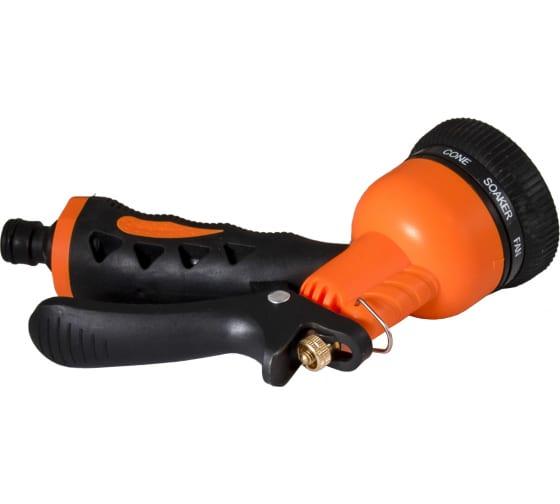 Пистолет-распылитель, 8 режимов полива эргономичная прорезиненная рукоятка, регулировка напора воды металлическая.