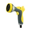 Пистолет-распылитель представляет собой садовый аксессуар, предназначенный для полива растений и почвы. Пистолет оснащен эргономичной прорезиненной ручкой, благодаря которой его удобно и комфортно держать в руке даже на протяжении длительного времени. Имеет 7 режимов подачи воды, регулируемых поворотной головкой. Легко нажимаемый курок делает процесс полива удобным и простым. Изделие надежно и герметично крепится к шлангу при помощи универсального соединителя, расположенного на конце пистолета.