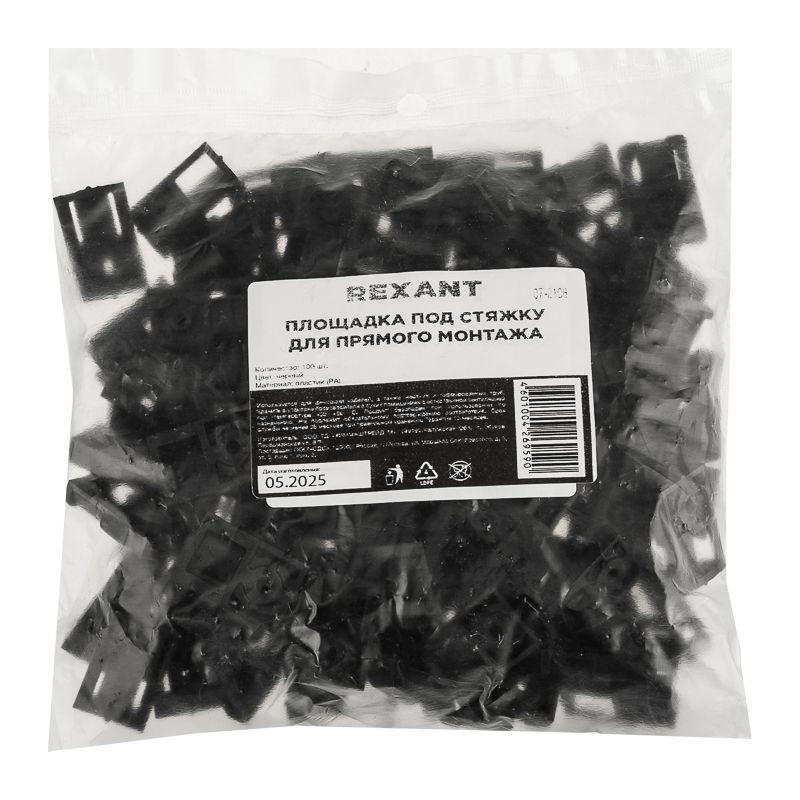 Площадка под стяжку используется для фиксации кабелей, а также жестких и гофрированных труб к поверхности. Предназначена для прямого монтажа. Выполнена из черного пластика. Установка площадки производится с помощью монтажного пистолета, также возможен монтаж с помощью дюбелей и саморезов. Специальный выступ возле отверстия для крепежа демпфирует удар при забивании площадки пистолетом, что гарантирует повышенную устойчивость к разлому. При креплении к дереву соблюдайте осторожность: отрегулируйте силу удара пистолета. Рекомендуемый диаметр ствола: 11 мм.