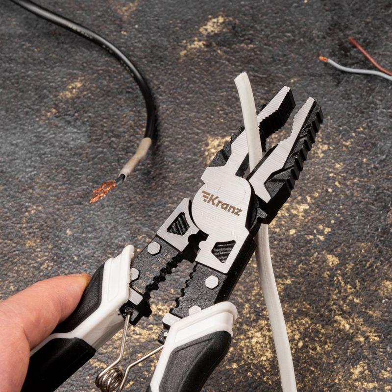 Многофункциональные универсальные плоскогубцы – это инструмент на все случаи жизни включающий в себя: плоскогубцы, бокорезы, инструмент для зачистки кабеля, инструмент для обжима клемм. Используются для ремонта автомобилей, мотоциклов, механизмов и т.д. Применяются для монтажных работ, а также в быту. Плоскогубцы изготовлены из высококачественной хромованадиевой стали (Cr-V). Оснащены износостойкими двухкомпонентными анатомическими рукоятками, которые не скользят в руках. Тип рукояток – японский. Инструмент обладает отличной режущей способностью, подходит для резки/зачистки пластика, медных и мягких проводов. Плоскогубцы подходят для зачистки кабеля от 1 мм2 до 4 мм2.