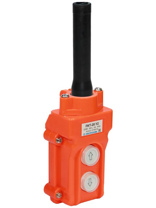 Посты кнопочные серии ПКТ предназначены для коммутации электрических цепей управления подъёмными механизмами. Представляют собой герметичный корпус из термостойкой ABS-пластмассы с установленными кнопками. Для герметизации кабеля используется защитный сальник, а между корпусом и панелью устанавливается герметизирующая прокладка. Преимущества: - наличие защитного сальника на вводе кабеля, который исключает попадание влаги и пыли внутрь корпуса; - между основанием и крышкой установлена герметичная прокладка; - степень защиты IP30, IP54, IP65; - возможность установки 2, 4, 6, 8 и 10 кнопок; - конструкция обеспечивает переключение групп контактов в соответствии с заложенным в механизме порядком; - наличие кнопок «ПУСК» и «СТОП»; - наличие кнопки «БЛОКИРОВКА» для экстренной остановки механизма.