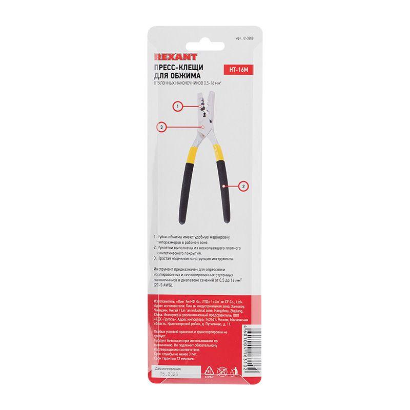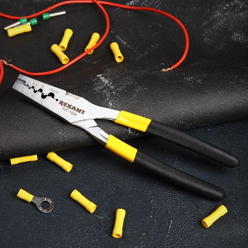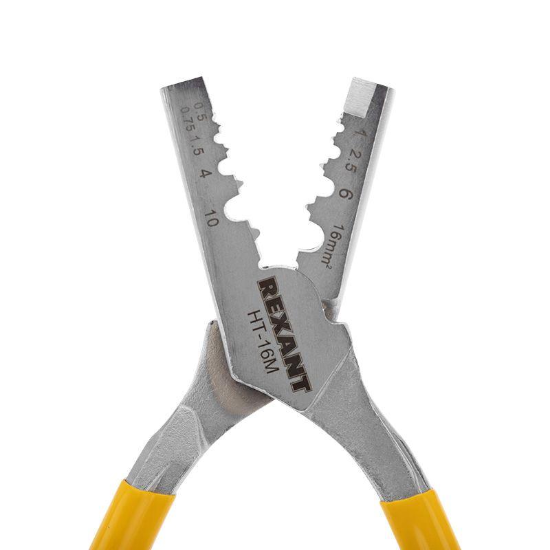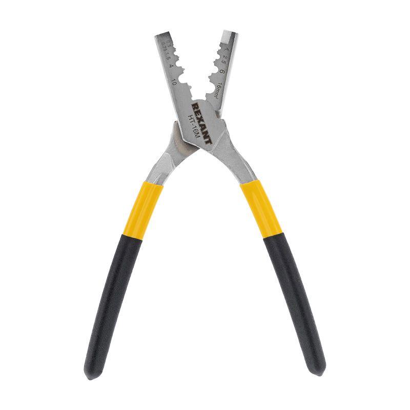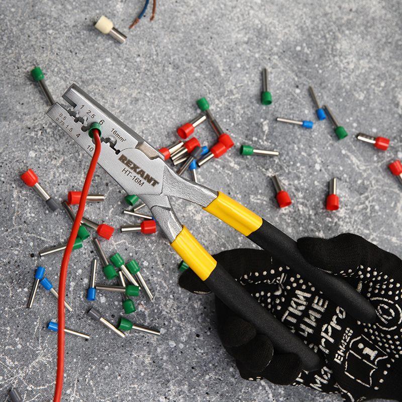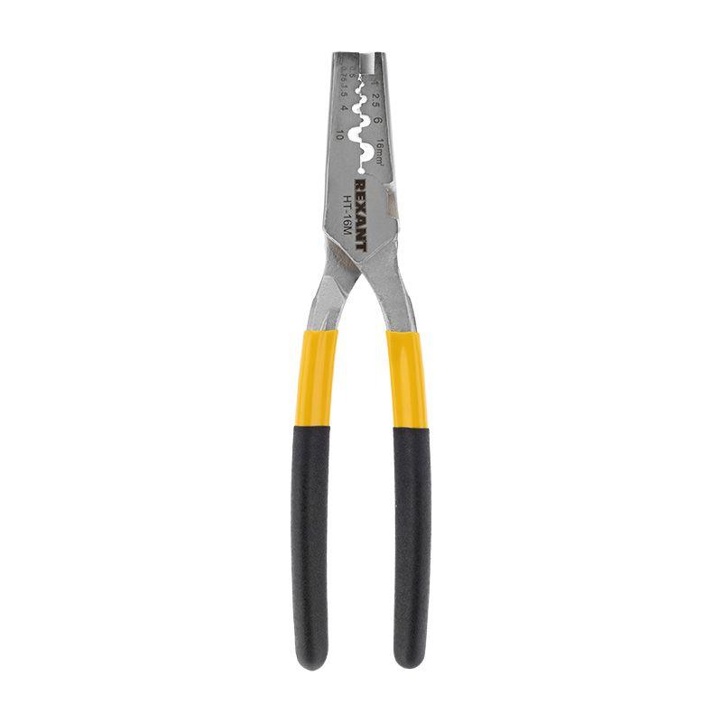 Пресс-клещи HT-16M предназначены для опрессовки изолированных и неизолированных втулочных наконечников сечением 0,5–16 мм2. Корпус клещей изготовлен из высокопрочной закаленной стали, что обеспечивает длительный срок службы и устойчивость к механическим нагрузкам. Профилированные восьмипозиционные обжимные губки предназначены для надежного захвата и эффективного обжима соединительных элементов. На губки нанесена справочная маркировка для удобного и быстрого поиска нужной позиции в матрице. Нескользящие рукоятки выполнены из плотного синтетического материала, что делает работу комфортной и безопасной даже при длительном использовании.