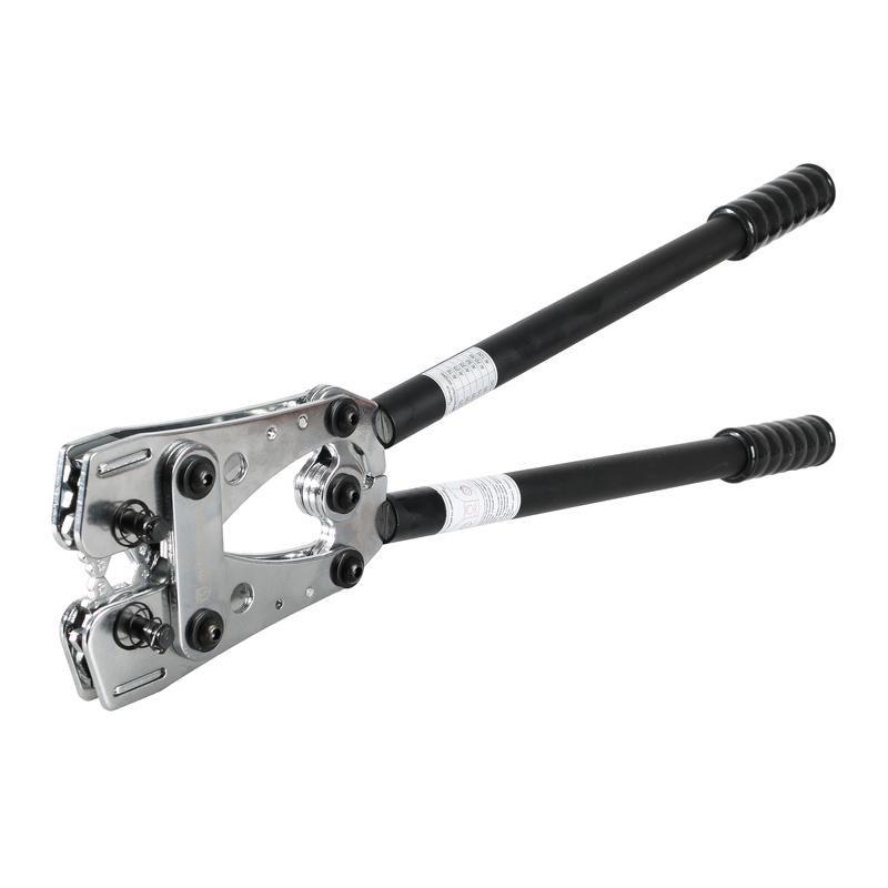 • Предназначены для опрессовки медных и алюминиевых неизолированных трубчатых наконечников • Диапазон сечений: • медные наконечники 10–120 мм2 • алюминиевые наконечники 16–120 мм2 • Встроенные матрицы револьверного типа • Ширина опрессовочного профиля: 5 мм • Гексагональный обжим • Быстрая перенастройка на нужный размер • Подпружиненные штифтовые фиксаторы матриц • Корпус из 5-миллиметровой стали • Обработка поверхности: хромирование • Удлиненные рукоятки с удобными резиновыми ручками • Вес: 3.60 кг • Длина: 640 мм