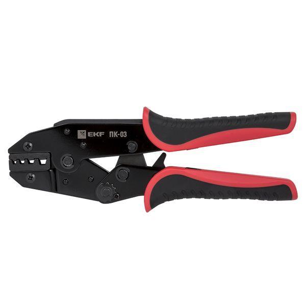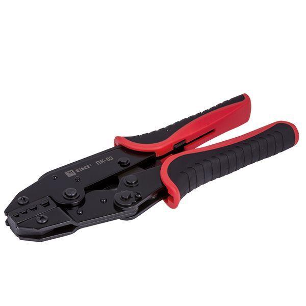 Пресс-клещи pk-03-exp предназначены для НШВ, НШВИ наконечников сечением 4-16 мм2. Инструмент оснащен храповым механизмом с автоматической разблокировкой по завершению цикла опрессовки. Каждая модель имеет маркировку, указывающую значение сечения используемого наконечника или разъема, а также нанесенную цветовую маркировку, соответствующую цвету изолирующей манжеты. Профиль опрессовки - трапеция.