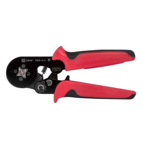 Пресс-клещи pkv-6-4-exp предназначены для НШВИ наконечников сечением 0,25-6 мм2 и НШВИ(2) наконечников сечением 2х0,5-2х4 мм2. Кримпер с четырехсегментной матрицей с автоматической настройкой на необходимый размер гильзы. Инструмент оснащен храповым механизмом с возможностью разблокировки на любом этапе опрессовки. Профиль опрессовки - квадрат.
