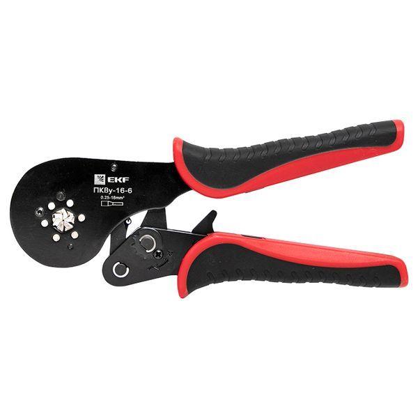 Пресс-клещи pkvy-16-6-exp предназначены для НШВИ наконечников сечением 0,25-16 мм2 и НШВИ(2) наконечников сечением 2х0,5-2х6 мм2. Кримпер с шестисегментной матрицей с автоматической настройкой на необходимый размер гильзы. Инструмент оснащен храповым механизмом с возможностью разблокировки на любом этапе опрессовки. Профиль опрессовки - шестигранник.