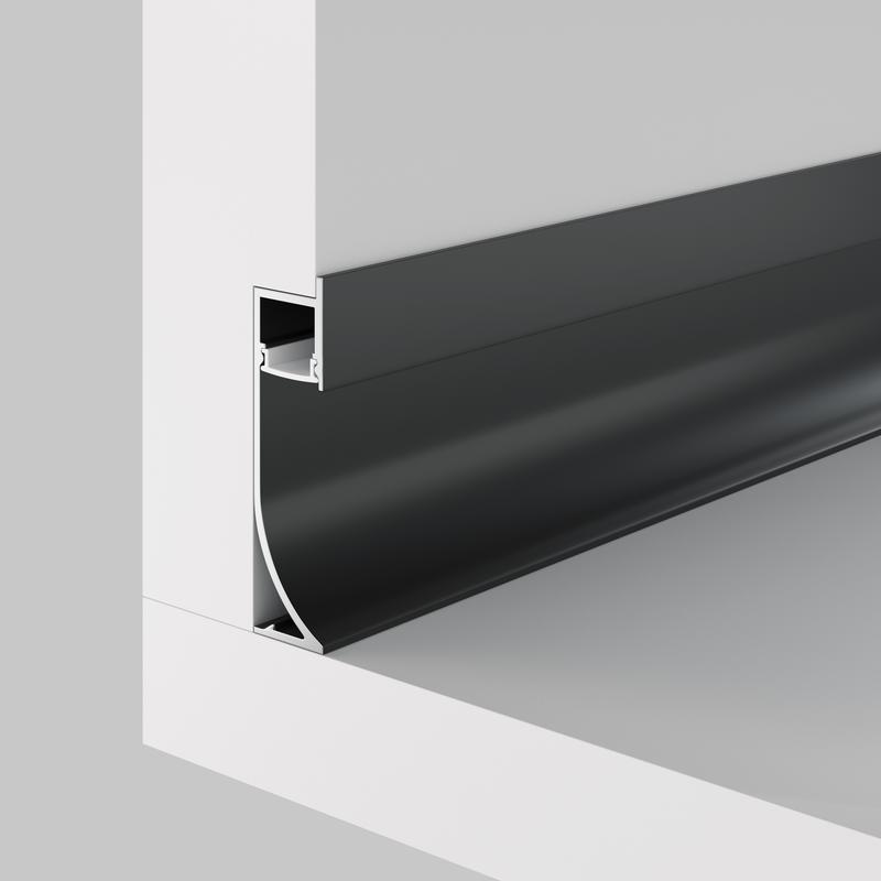 Алюминиевый профиль плинтус с подсветкой Алюминиевый профиль Maytoni ALM-5314-B-2M длиной 2 метра предназначен для установки светодиодных лент, обеспечивая надежное теплоотведение и защиту. Этот профиль создан для создания современного и элегантного освещения в различных интерьерах. С его помощью можно легко скрыть светодиодные ленты и обеспечить равномерное освещение без видимых проводов и деталей.