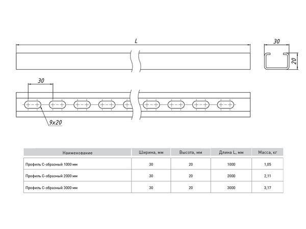 "С-образные профили - это стандартный тип монтажных изделий, представляющий из себя перфорированный по основанию профиль почти замкнутой формы. Предназначен для легких нагрузок и используется для прокладки как металлических кабельных лотков, так вентиляционных коробов в горизонтальной плоскости. Может применяться для многоярусной прокладки коммуникаций. Для монтажа профиля к опорным конструкциям используются метизы М8."
