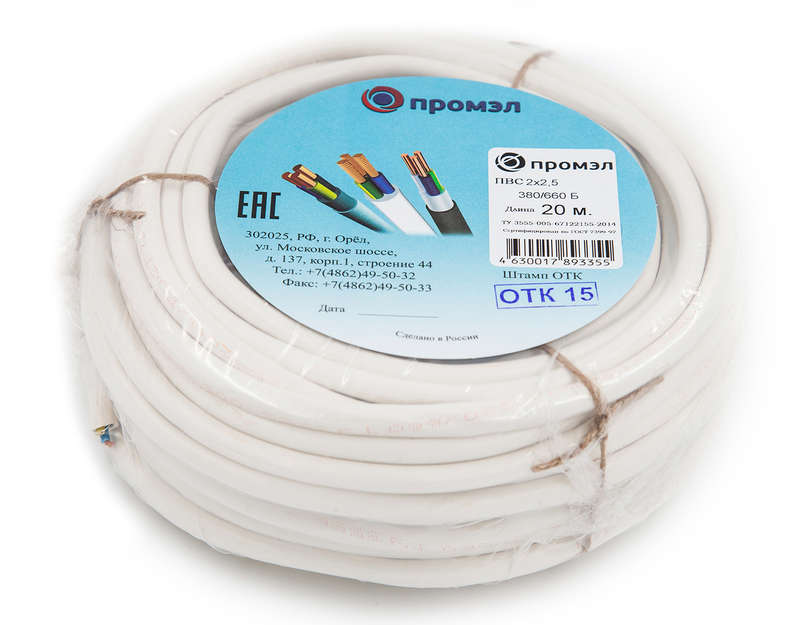 Провод ПВС 2х2.5 380В Б (бухта 20м) (шт) ПромЭл 13321540