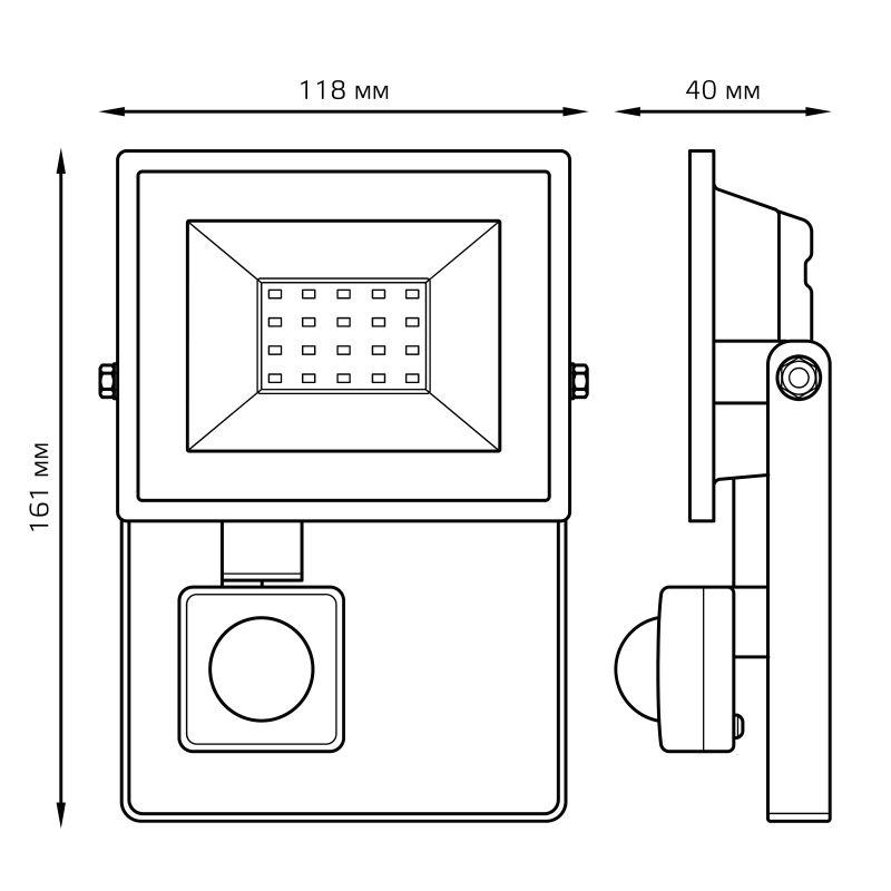 Прожектор светодиодный Elementary 20Вт 6500К IP65 1900лм 175-265В ДО с датчиком движения черн. GAUSS 628511320
