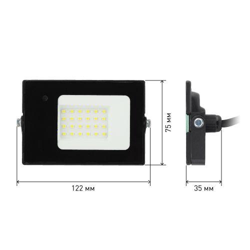 Прожектор светодиодный уличный с датчиком движения (СДО) ЭРА LPR-041-1-65K-020 мощность 20 Вт, с цветовой температурой 6500К (холодный белый свет), пылевлагозащитой IP65 (защищен от пыли и струй воды с любого направления), световым потоком 1400 Лм. Микроволновый датчик реагирует на движение в зоне действия (радиус срабатывания - до 6м) и автоматически включает освещение (время задержки - 30-40с). Корпус изготовлен из анодированного алюминия с покраской в черный цвет. Стекло - закаленное. LED технология обеспечивает длительный срок службы и экономию электроэнергии. Светильник работает в широком диапазоне рабочих напряжений - 200-240В, а также широком диапазоне температу от -45 до +40 - подходит как для внутреннего, так и наружного применения. Предназначен как для промышленного, так и для бытового освещения: дворов, подсобных помещений, приусадебных хозяйств, билбородов, в качестве уличного фонаря.