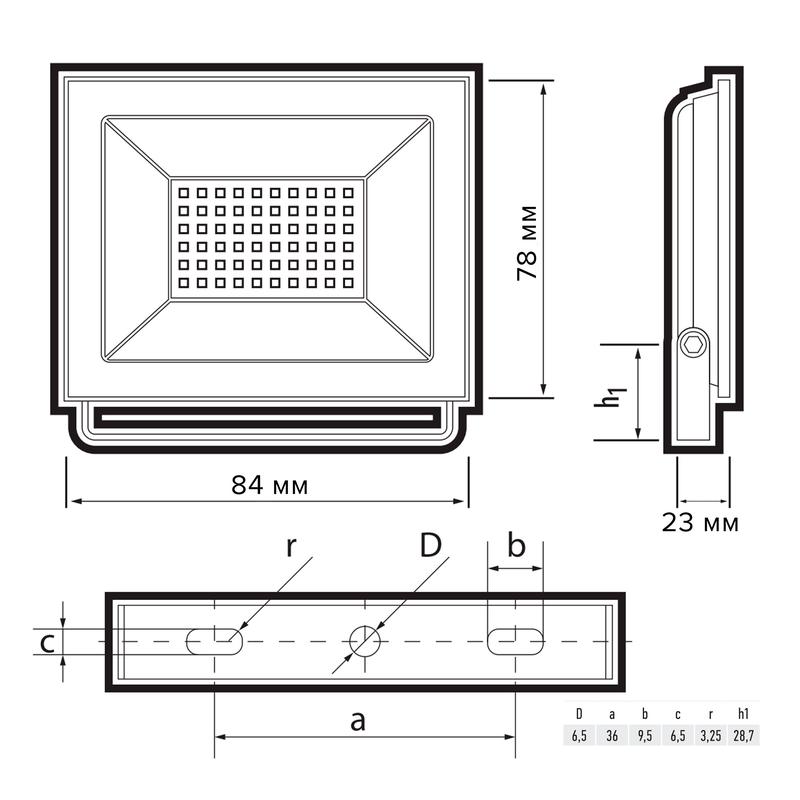 Прожектор светодиодный СДО-20 10Вт 6500К IP65 230В BL ДО прозр. закален. стекло ФАZА 5047242