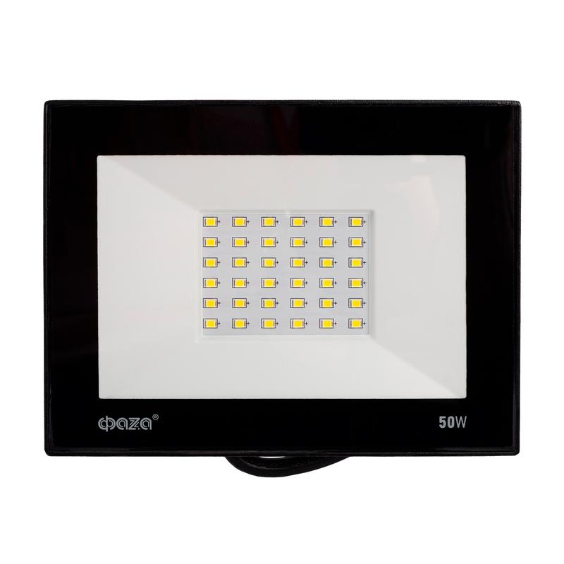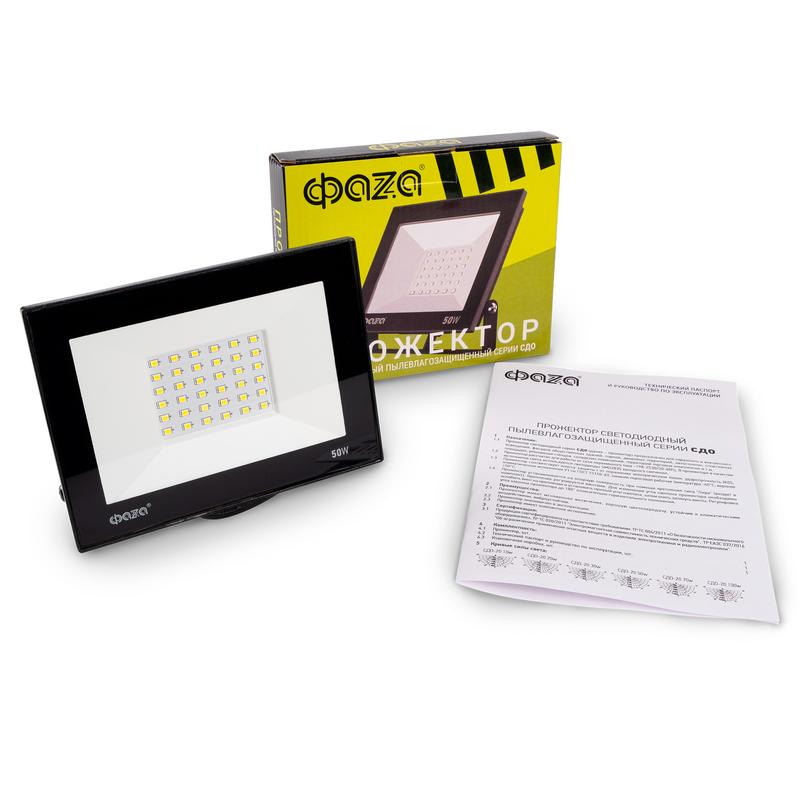 Прожектор светодиодный СДО-20 50Вт 6500К IP65 230В BL ДО прозр. закален. стекло ФАZА 5047303