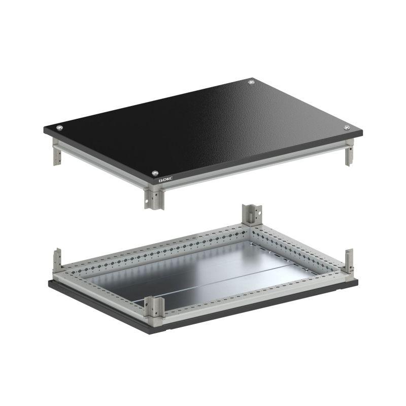 Комплект "Крыша и основание" используется для сборки корпуса. В комплект входят основание, крыша, комплект донных пластин, направляющие для монтажной платы, ручка с двойной бородкой 3 мм и монтажные аксессуары. Материал основания и крыши — сталь толщиной 1,5 мм с порошковым покрытием RAL 9005. Материал профиля — оцинкованная сталь толщиной 1,5 мм с порошковым покрытием RAL 7035. Размер ШхГ: 800х400 мм.
