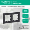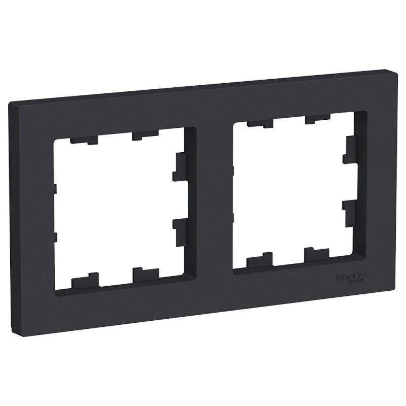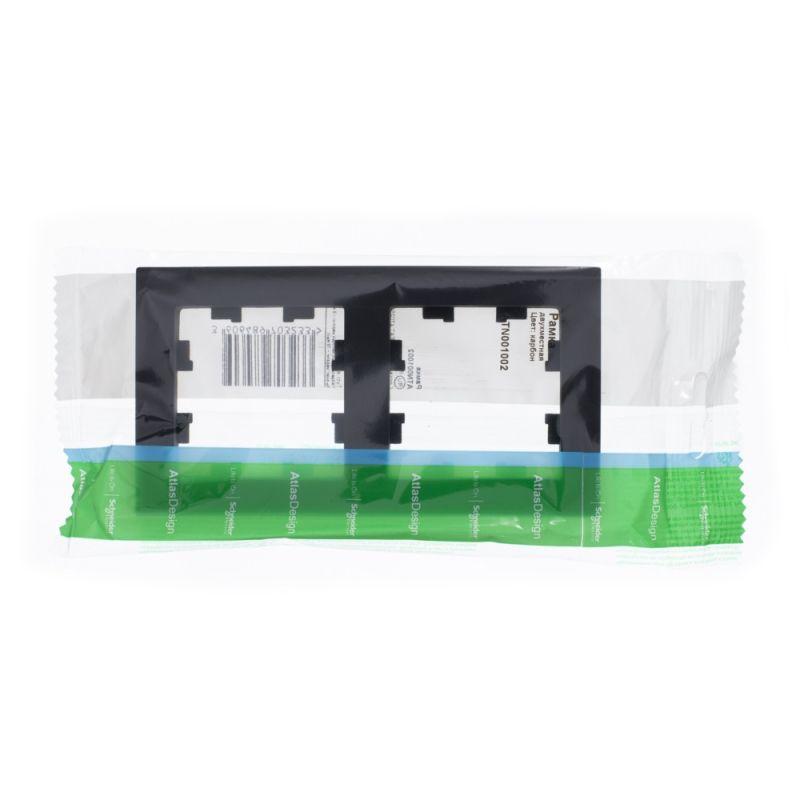 Рамка Systeme Electric (ранее Schneider Electric) серии AtlasDesign в цвете карбон двухместная. - Устанавливается в вертикальном и горизонтальном положениях. - Лицевые детали из качественного ABS-пластика, устойчивого к царапинам и УФ-излучению. - Позволяет гармонично вписать электроустановочное изделие в интерьер помещения. - Благодаря покрытию «soft touch» к изделию приятно прикасаться.