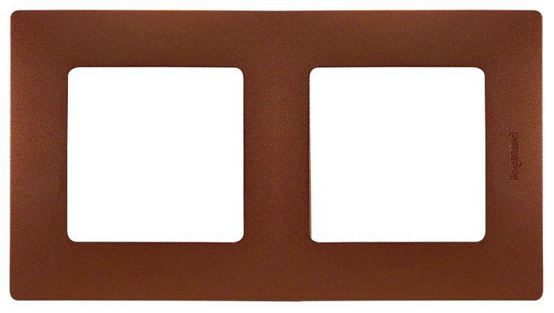 Рамка для розеток и выключателей Legrand Etika, 2 поста,Какао. Особенности: - Металлик. Матовая. Изготовлена из высококачественного АБС пластика-материал не поддерживает горение, стоек к выгоранию и загрязнениям. - Крепление рамки на многоуровневых защёлках. Способ крепления позволяет скрывать незначительные неровности стен.
