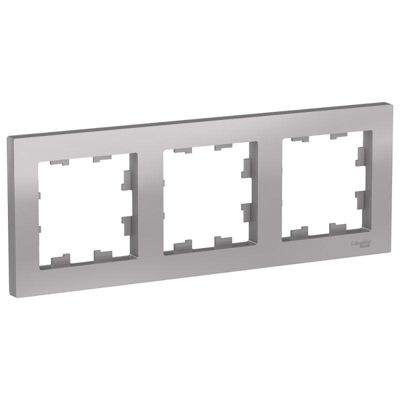 Рамка Systeme Electric (ранее Schneider Electric) серии AtlasDesign в цвете алюминий трёхместная. - Устанавливается в вертикальном и горизонтальном положениях. - Лицевые детали из качественного ABS-пластика, устойчивого к царапинам и УФ-излучению. - Позволяет гармонично вписать электроустановочное изделие в интерьер помещения.