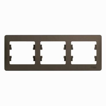 Рамка Systeme Electric (ранее Schneider Electric) серии Glossa (цвет шоколад) трёхместная. - Устанавливается в горизонтальном положении. - Выполнена из материала PС+ASA, стойкого к УФ-излучению и появлению царапин. - Позволяет гармонично вписать электроустановочное изделие в интерьер помещения.