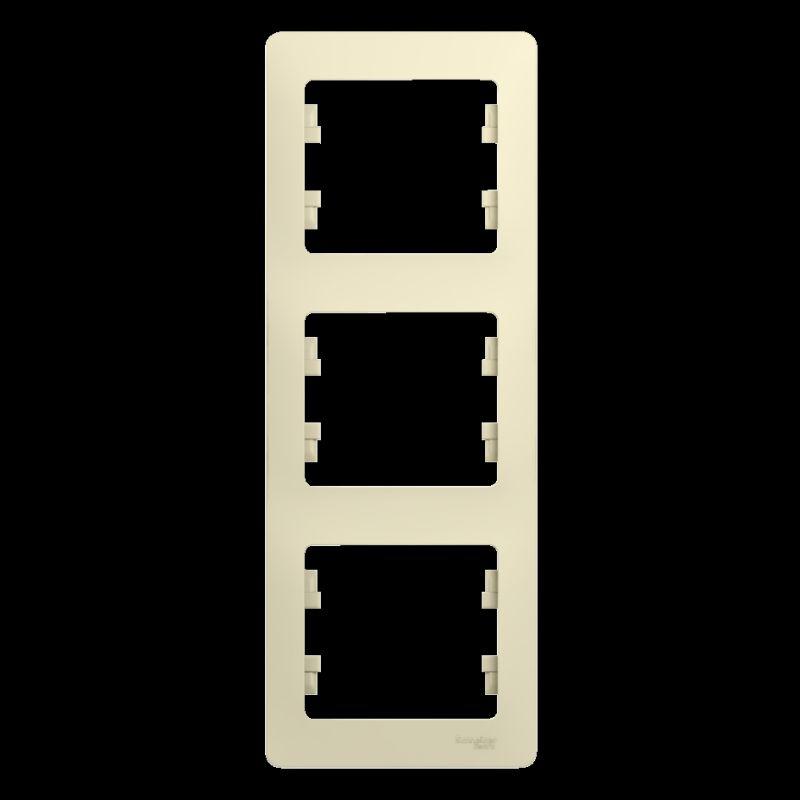 Рамка Systeme Electric (ранее Schneider Electric) серии Glossa (цвет бежевый) трёхместная. - Устанавливается в вертикальном положении. - Выполнена из материала PС+ASA, стойкого к УФ-излучению и появлению царапин. - Позволяет гармонично вписать электроустановочное изделие в интерьер помещения.