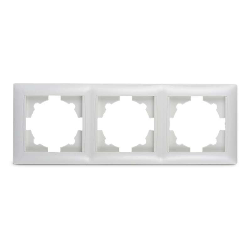 Тройная рамка 6302H VALENZO от компании IN HOME успешно выполнит функцию декоративного оформления сразу трёх встраиваемых розеток или выключателей. Дополнительно защищает настенное покрытие от сопутствующих эксплуатации загрязнений и при необходимости легко поддается чистке. Материал рамки – гладкий термостойкий пластик. Представлена в белом цвете.