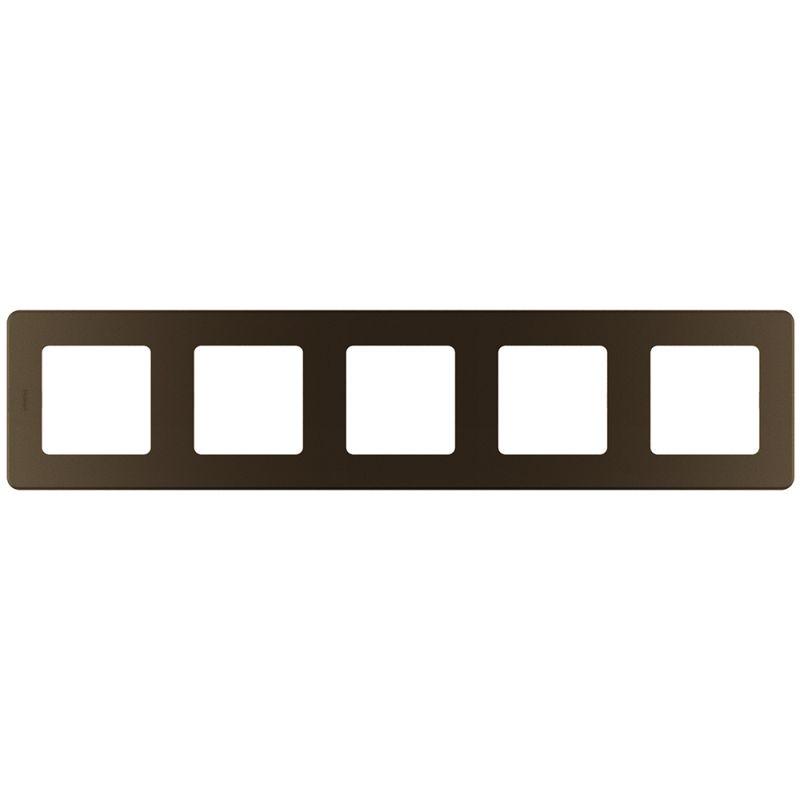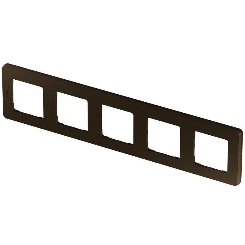 Рамка декоративная универсальная Legrand Inspiria, 5 постов, для горизонтальной или вертикальной установки, цвет "Бронза". Предназначена для установки на механизмы Legrand Inspiria. Особенности изделия: - Изготовлено из качественного пластика ABS, устойчивого к загрязнению и воздействию УФ-излучения. - Универсальная конструкция подходит для горизонтального и вертикального монтажа. - Инновационное крепление на защелках обеспечивает быстрый монтаж и демонтаж без необходимости снятия лицевых панелей механизмов, что повышает удобство и снижает трудозатраты. - Система зубчатых креплений позволяет регулировать глубину установки рамки, тем самым скрыть неровность стен и дефекты установки монтажных коробок.